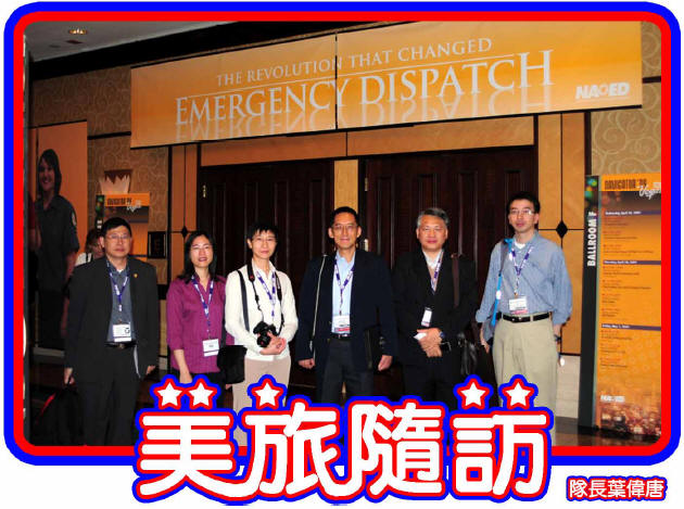 大會亦安排了參觀拉斯維加斯的消防通訊中心。中心正採用MPDS的ProQA軟件,由合資格的調派員當值,運作模式則是將接收召喚和調派工序分開,即Call-taker 和Call-dispatcher來處理救護服務,中心還派駐了一名醫學顧問,可提供緊急支援。值得一提的是那ProQA軟件還加入了對應流感的相關問題。此外,這裡的救護車服務並與私營救護車服務掛鉤。在現場負責處理的輔助醫療人員可憑其專業醫療判斷,先將情況危急者送往醫院急救;或將非緊急病者轉介予私營救護車送院,有關費用則由個人的醫療保險負擔。 每日完成官方活動後,晚上我們當然亦好好把握機會到處遊覽,四處留影。那裡五光十色的酒店霓虹和投資不菲的免費表演實在令人目不暇給,付費的更是值回票價。多得充當導遊的司徒長官仔細安排,識途老馬的他既為公事費神,也為我們策劃節目,照顧週全。我們當真是飯來張口,照單全收。好,就讓他威風多一次吧!