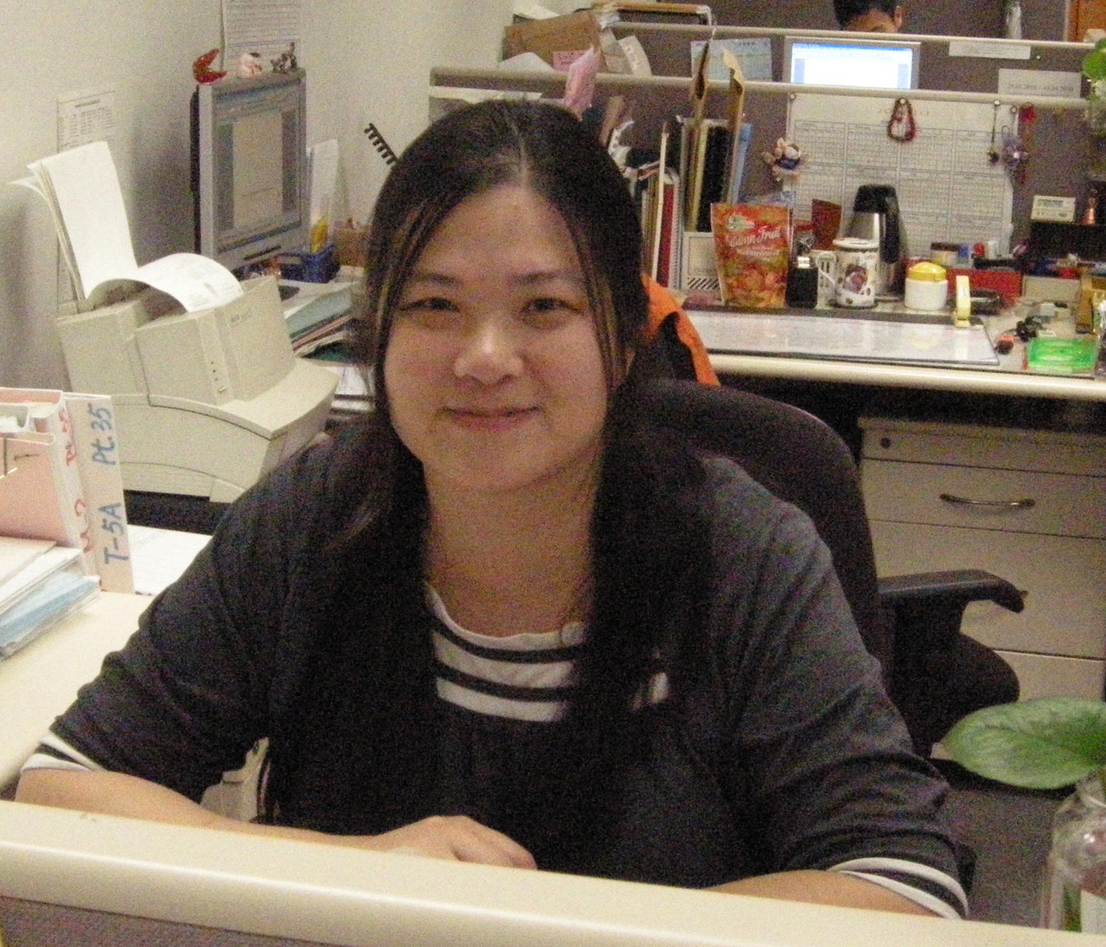 接住要介紹文書助理Ingrid,與Wallace同屬統計組,負責處理九龍區的F006及FS276,將有關資料按統計組編定的分類輸入電腦、存檔。Ingrid為人溫婉柔順、心細如塵。她喜歡種植不同種類的花草,使寫字樓增添不少綠色生氣。不知是否跟她有練習氣功有關,常常覺得這種慢活的生活方式和養生之道,很值得我這些心急人學習。初到任時,Ingrid關心我是否適應,熟悉多了我們還不時交換健康心得呢!